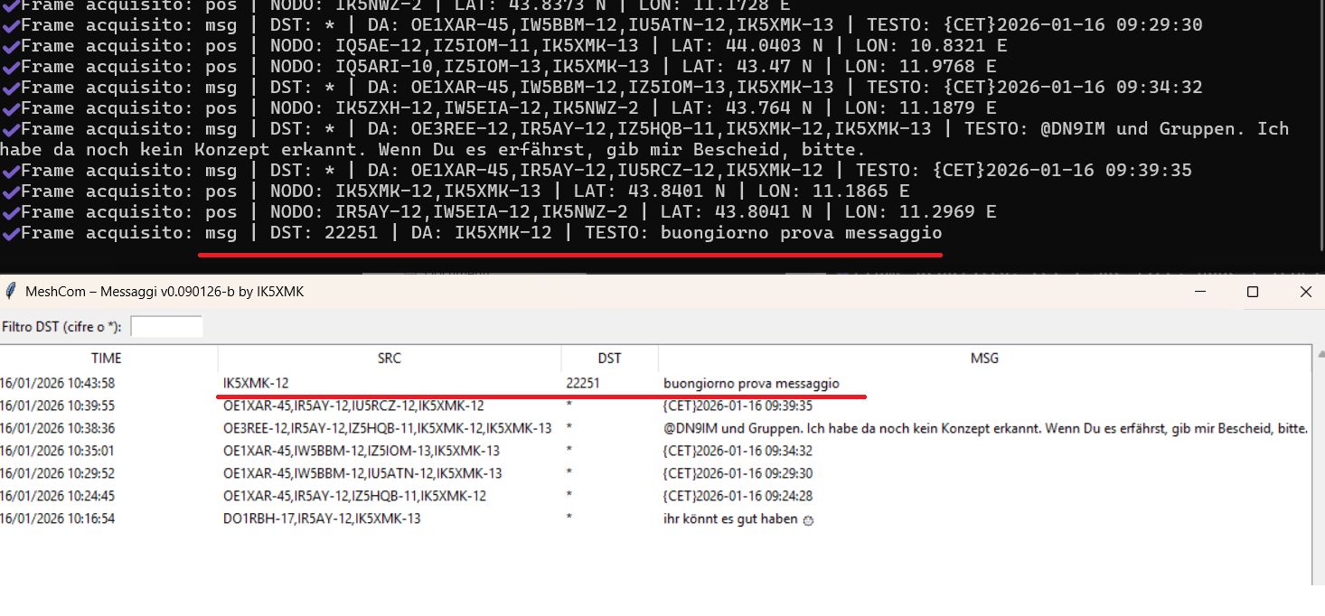 L’obiettivo di questo progetto, puramente amatoriale, è quello di gestire una infrastruttura radioamatoriale off-grid (quindi non raggiungibile via internet) composta da schede lora con firmware meshcom (chiamate “nodi” o stazioni radio mobili) che dialogano tra loro (tecnologia mesh) scambiandosi messaggi, posizioni e telemetrie via radio (433.175 MHz). Queste informazioni sono raccolte in un database e gestite da una stazione radio che chiameremo “campo base o gateway”. Il campo base (postazione fissa) ha a sua volta una scheda lora collegata fisicamente al computer ed elabora le informazioni ricevute. Se provvisto di connessione ad internet opererà come “gateway”, quindi potrà interagire con strutture esterne (es. altri gateway e/o nodi lora). I nodi mobili (tracker) sono provvisti di schede con GPS, il campo base può farne a meno e gestire le coordinate manualmente. Il campo base potrà: