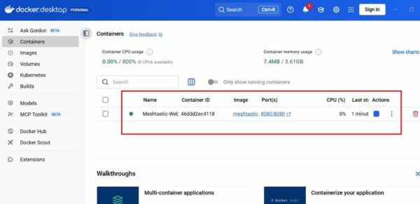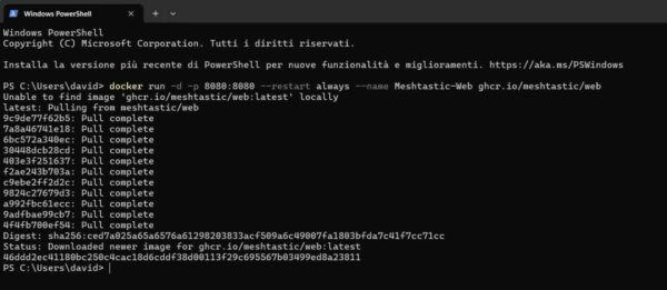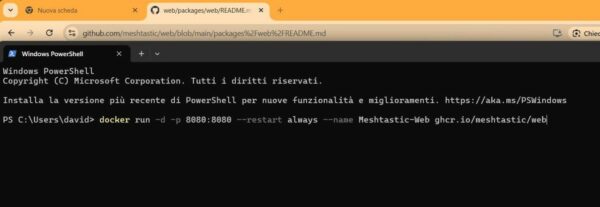 Unica accortezza: Docker Desktop per Windows deve essere in esecuzione e l’immagine docker di Meshtastic client operativa all’interno del contenitore.
