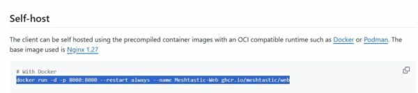 docker run -d -p 8080:8080 --restart always --name Meshtastic-Web ghcr.io/meshtastic/web